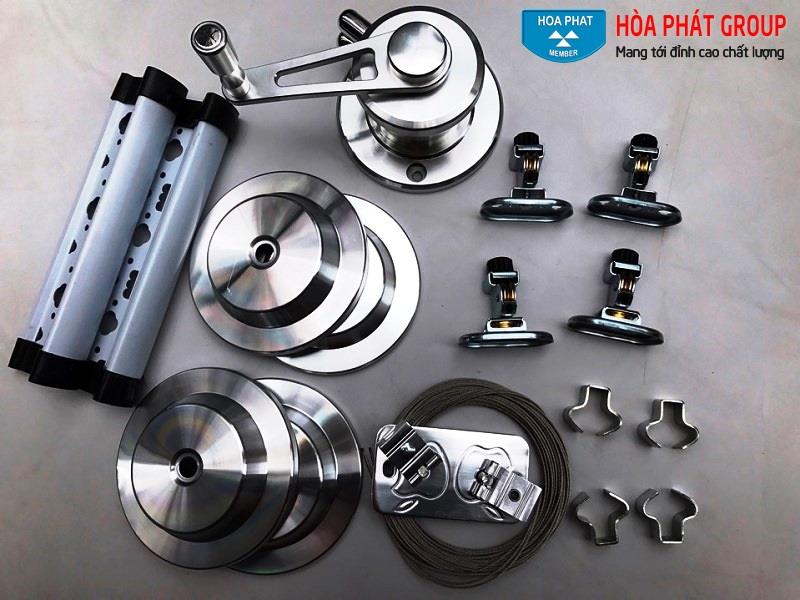 - Bao gồm : Bộ tời, 1 Dẫn hướng, 4 Buli(Dòng dọc), 2 Thanh phơi, Cáp giàn phơi (dài 7m).